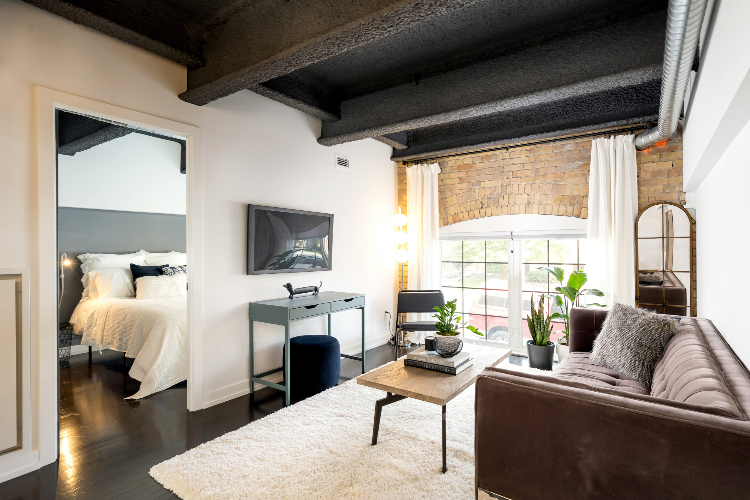 FOUND at the Foundry Lofts — for those of you with discerning, unique-space taste & a love for the perfect marriage of vintage + modern. Formally home to a train factory, this two-bed hard loft conversion within combines exposed brick, ductwork & stately arched windows w/ west-facing exposure, set against a gorgeously-renovated quartz-counter kitchen & open concept floor plan. Bonus – the industrially super-cool 16,000 sqft “living” atrium outside your door.