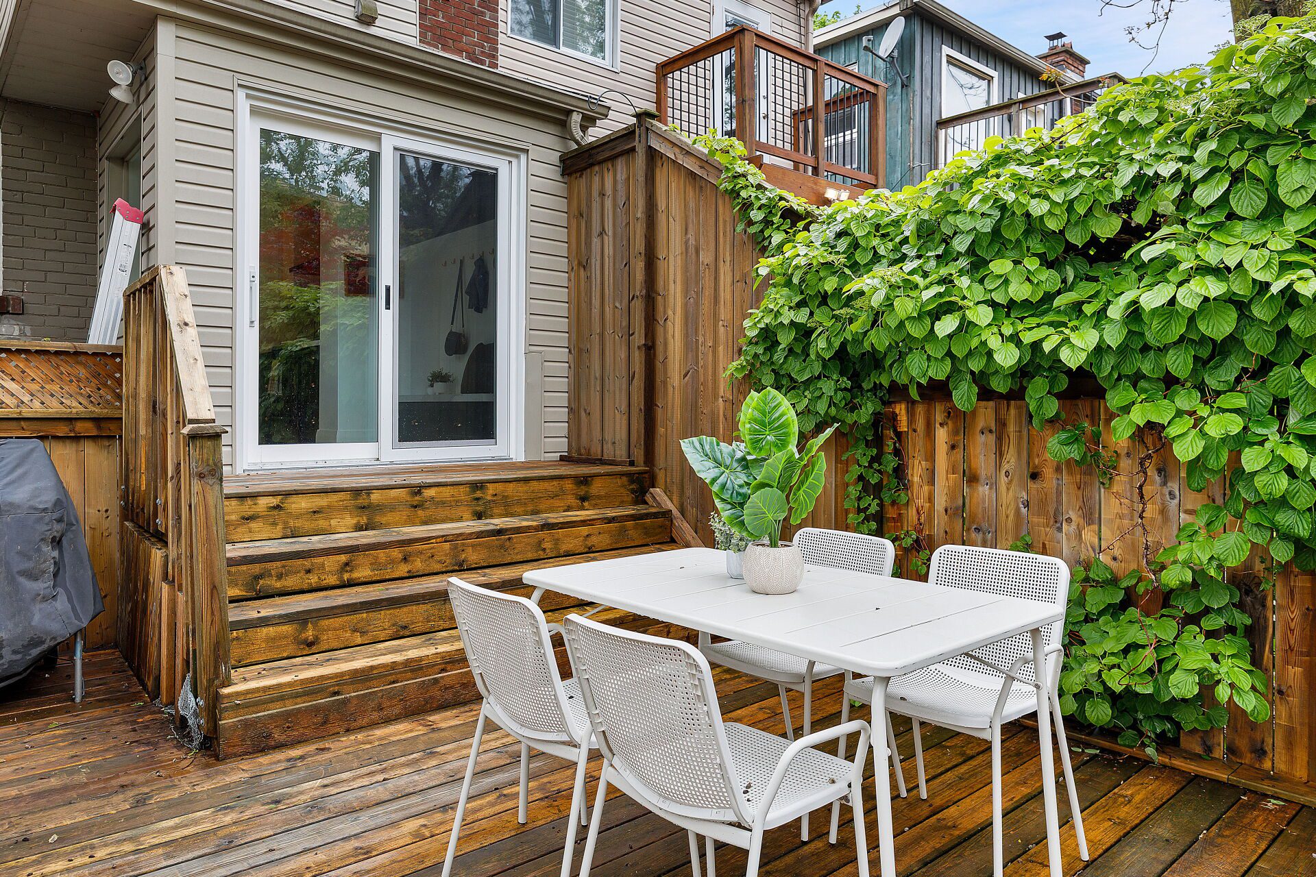 Tucked under a canopy of mature maples on one of Leslieville’s best one-way streets, 113 Alton is the full package: a 3-bedroom, 2-bath semi, complete with a bright- red door and a front porch that makes you feel like you’re already home. Step inside and the vibe just gets better. Open-concept but cozy, the living room is anchored by a fireplace on one wall and exposed brick on the other — ideal for movie nights, book binges and lazy Sundays. A big dining room sets the stage for dinner parties, homework marathons, or that first cup of coffee while the light pours in. The kitchen is a scene-stealer with crisp white cabinets, forest green lowers, and a farmhouse sink that says “let’s cook something amazing.” Mudroom with a walkout? Check. Out back, a fully fenced, low-maintenance yard is made for BBQs, twinkle lights, container gardening, and long, chilled- out nights under the stars. And yep, two-car parking behind it, because fighting for a spot is so last season. Upstairs, three bright bedrooms, a skylight, and a fresh, gorgeous, happy bathroom with floral wallpaper that brings the charm. Downstairs, a finished basement with cozy carpet, flexible living space, and another bath.