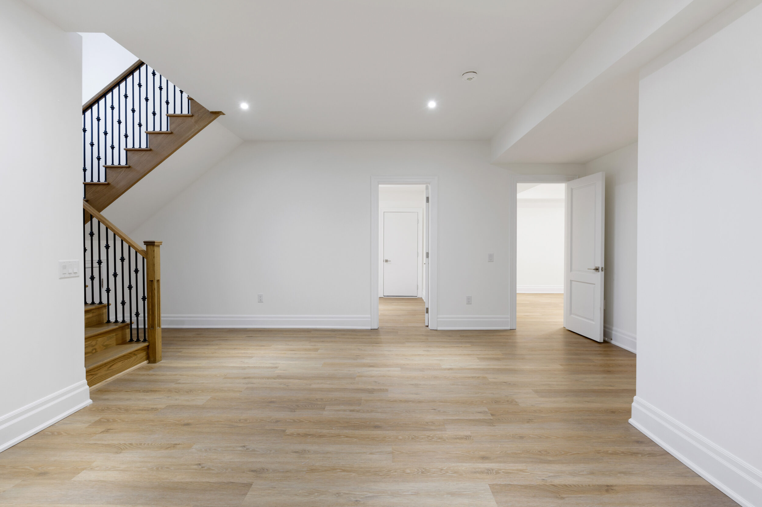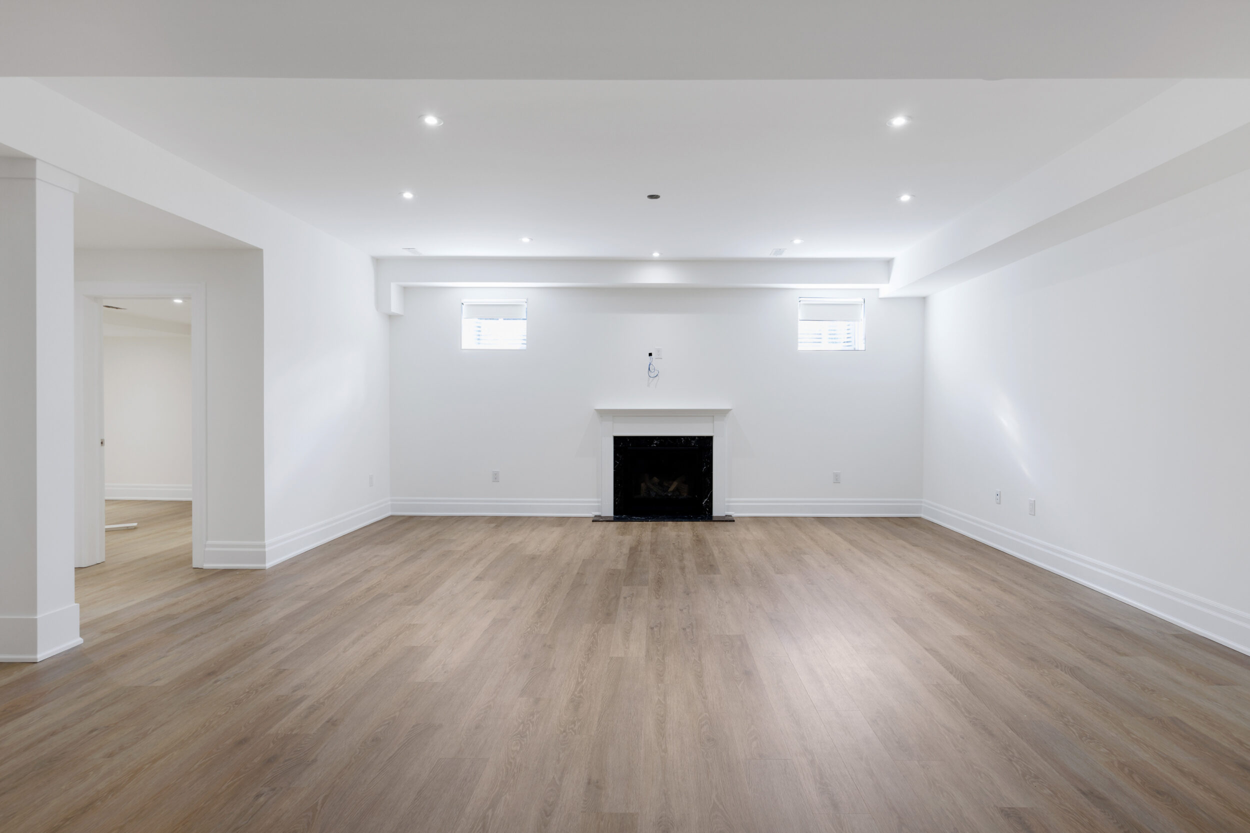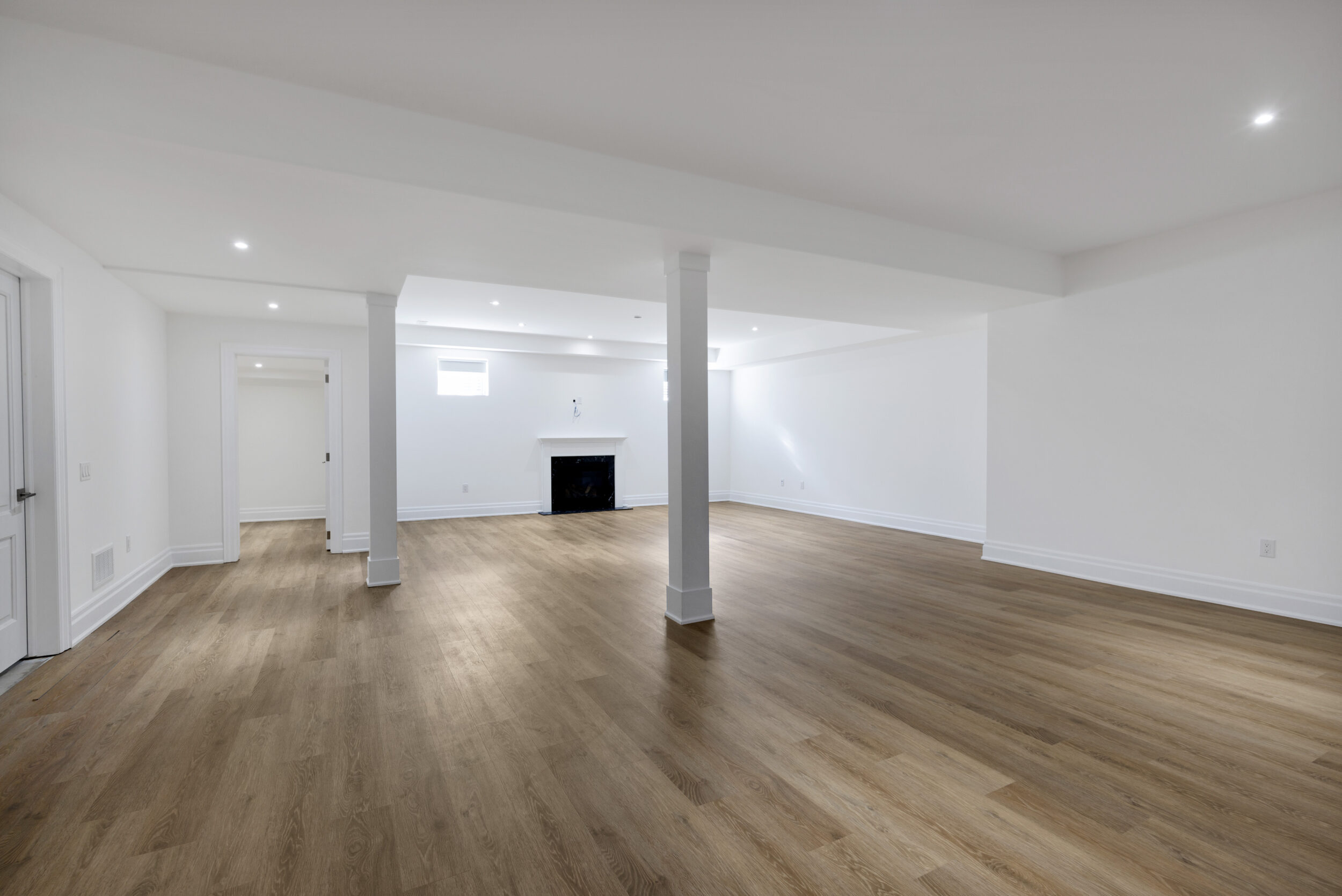 Below grade, the lower level is finished to the same standard as every floor above it and was designed with intention. A recreation room of truly sweeping scale anchors the space around a second fireplace. The additional rooms down here are a blank canvas drawn by whoever you are. A nanny suite with its own three-piece bath. A home gym. A studio. A quiet office the house above will never interrupt. A wet bar roughed in and ready to become the thing you didn’t know you needed until you had it. The storage alone will change your life. This is where the hockey bags live, the golf simulator gets installed, and the kids host their friends without disturbing a soul upstairs.