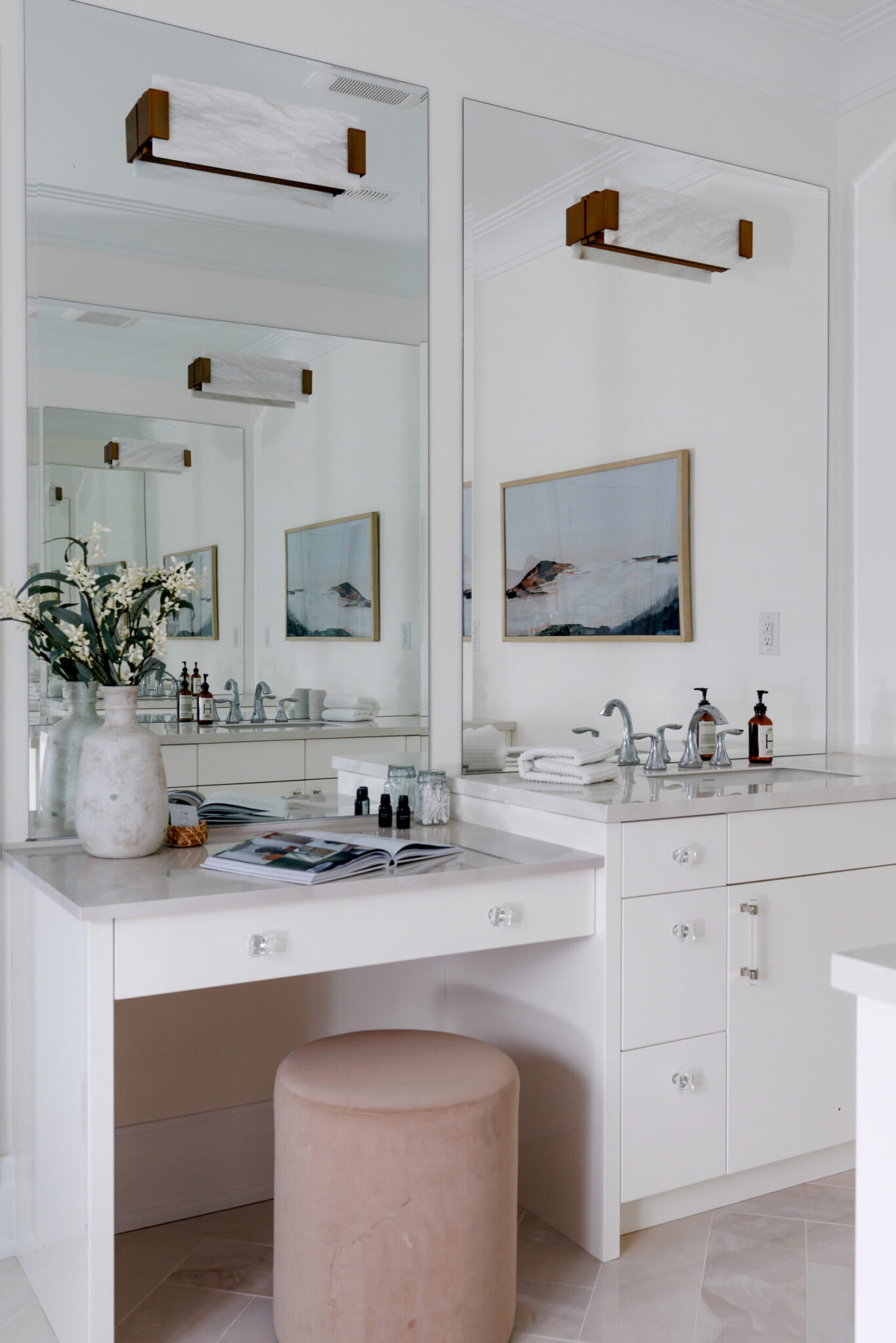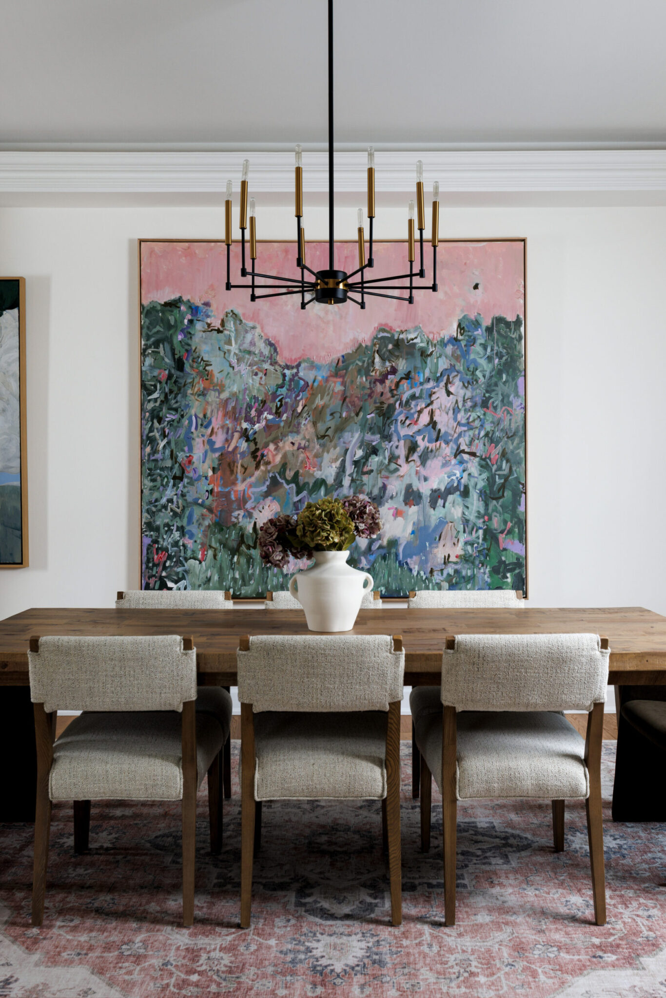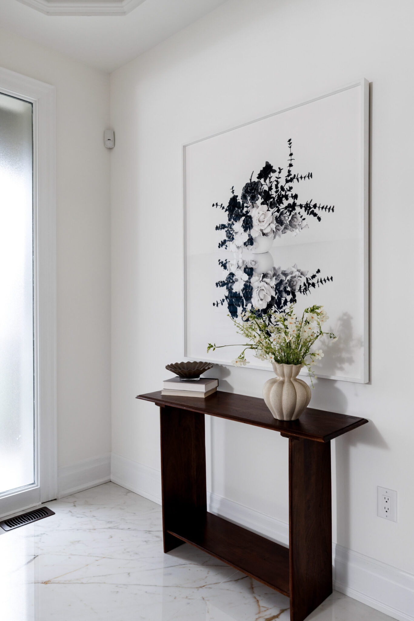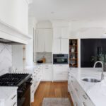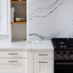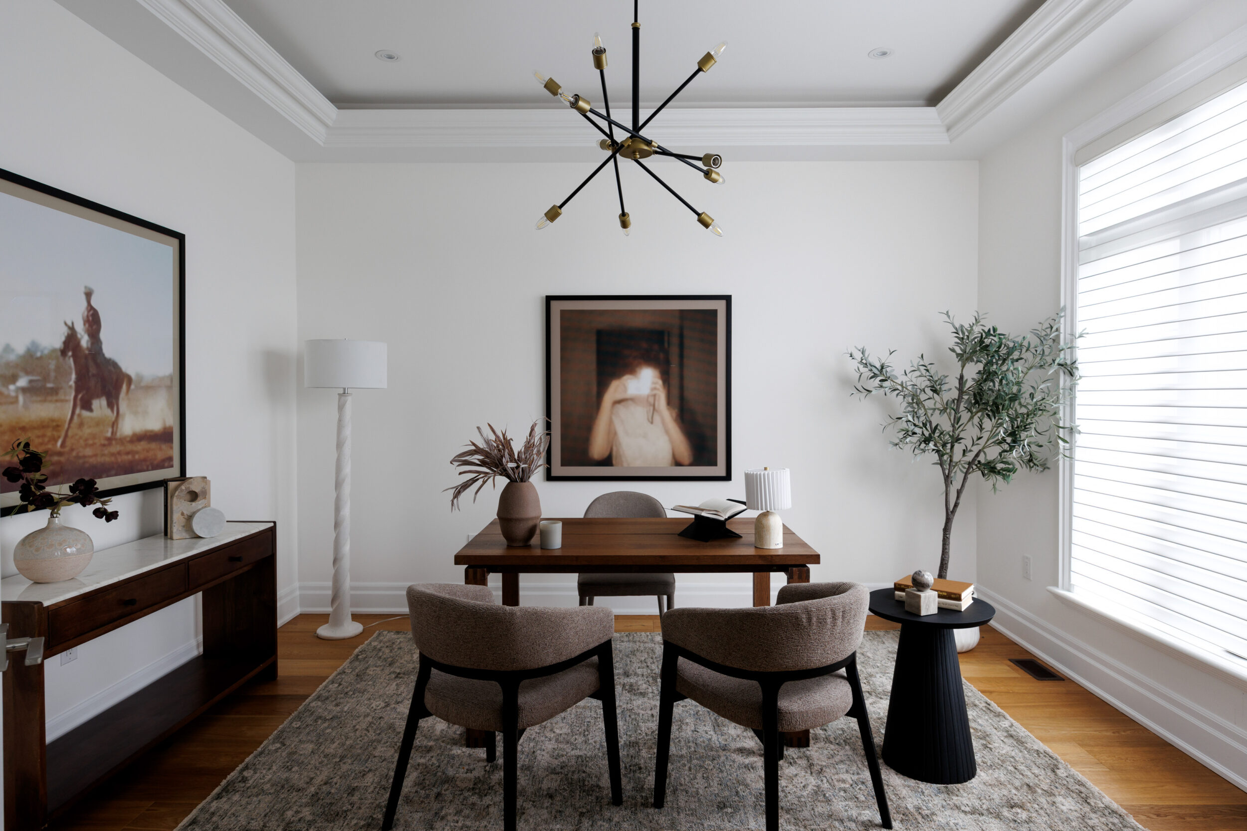 The kitchen is a proper working kitchen, not a showroom. White shaker custom Downsview cabinetry to the ceiling. A waterfall island in book-matched Cambria quartz with a prep sink and seating that invites people to stay. A professional-grade Dacor gas range with commercial grates and a Dacor refrigerator, for the person who knows what that means. Around it, the room opens into something more. An informal dining area at the centre built for everyday family dinners, games nights, and the kind of conversations that go longer than planned. A generous pantry. An office nook for the days when you just need a corner and a coffee. Every house has a kitchen. Very few have a room like this one.