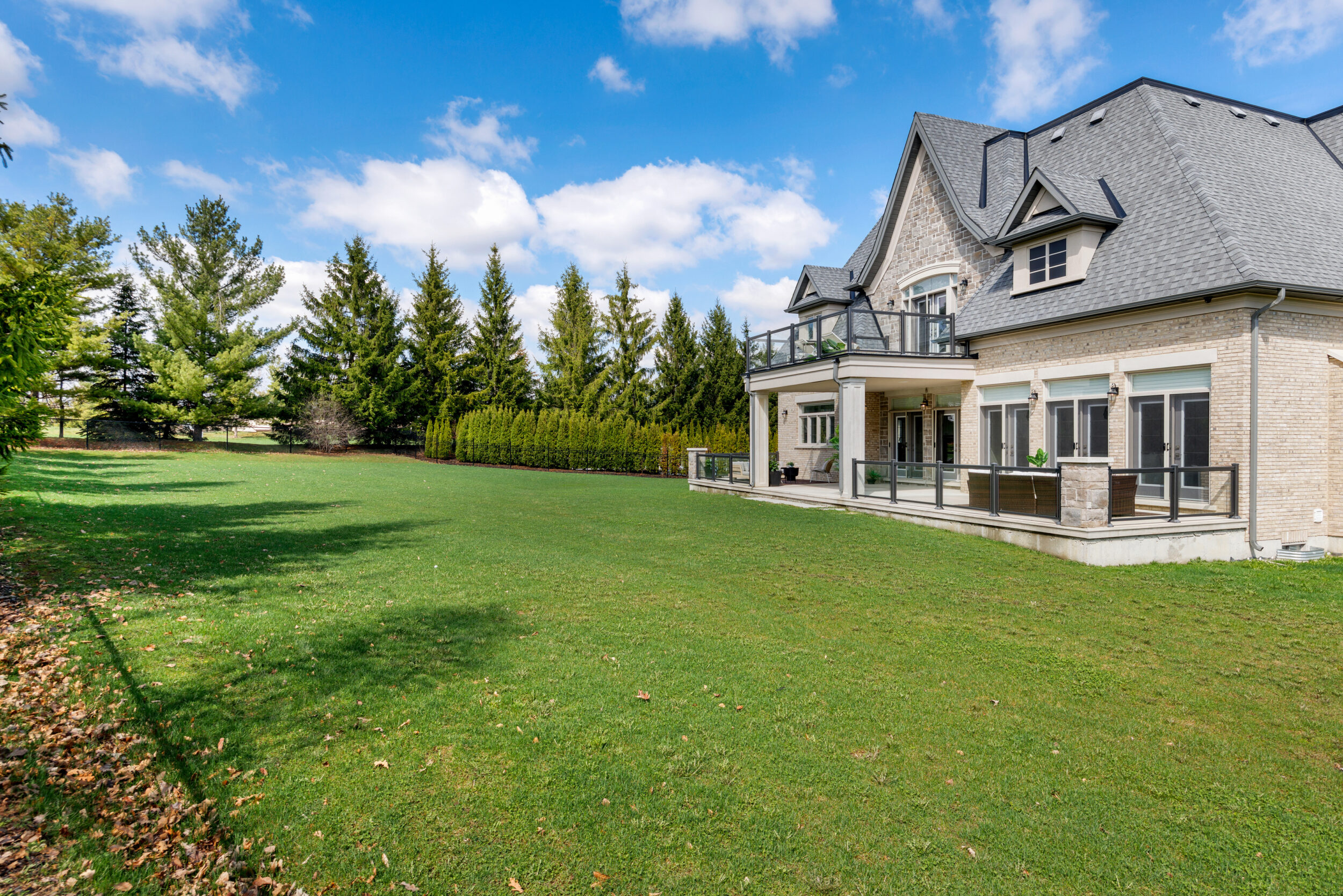 Situated on one of Kleinburg’s most coveted positions off The Boulevard, this estate sits at the edge of Copper Creek Golf Course, one of Canada’s top-ranked courses and the kind of place serious golfers mention by name without being asked. The rear opens directly onto the fairways with a seamless stretch of green, anchored by a mature treeline. The lot is pool-sized and perfectly proportioned for it. You don’t own the course, but from the back patio’s exposure at sunset, it may feel that way.