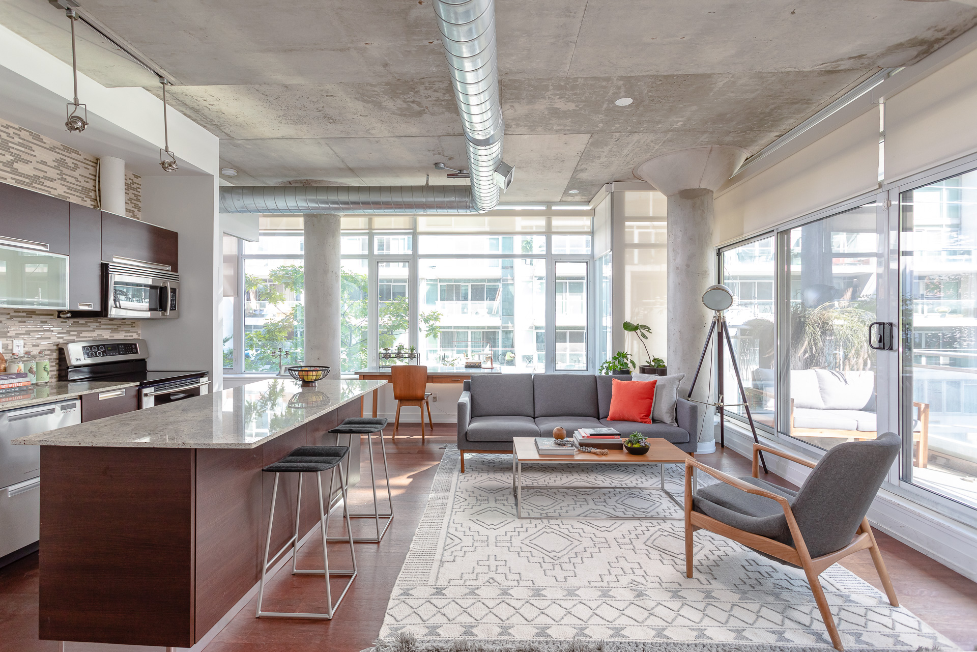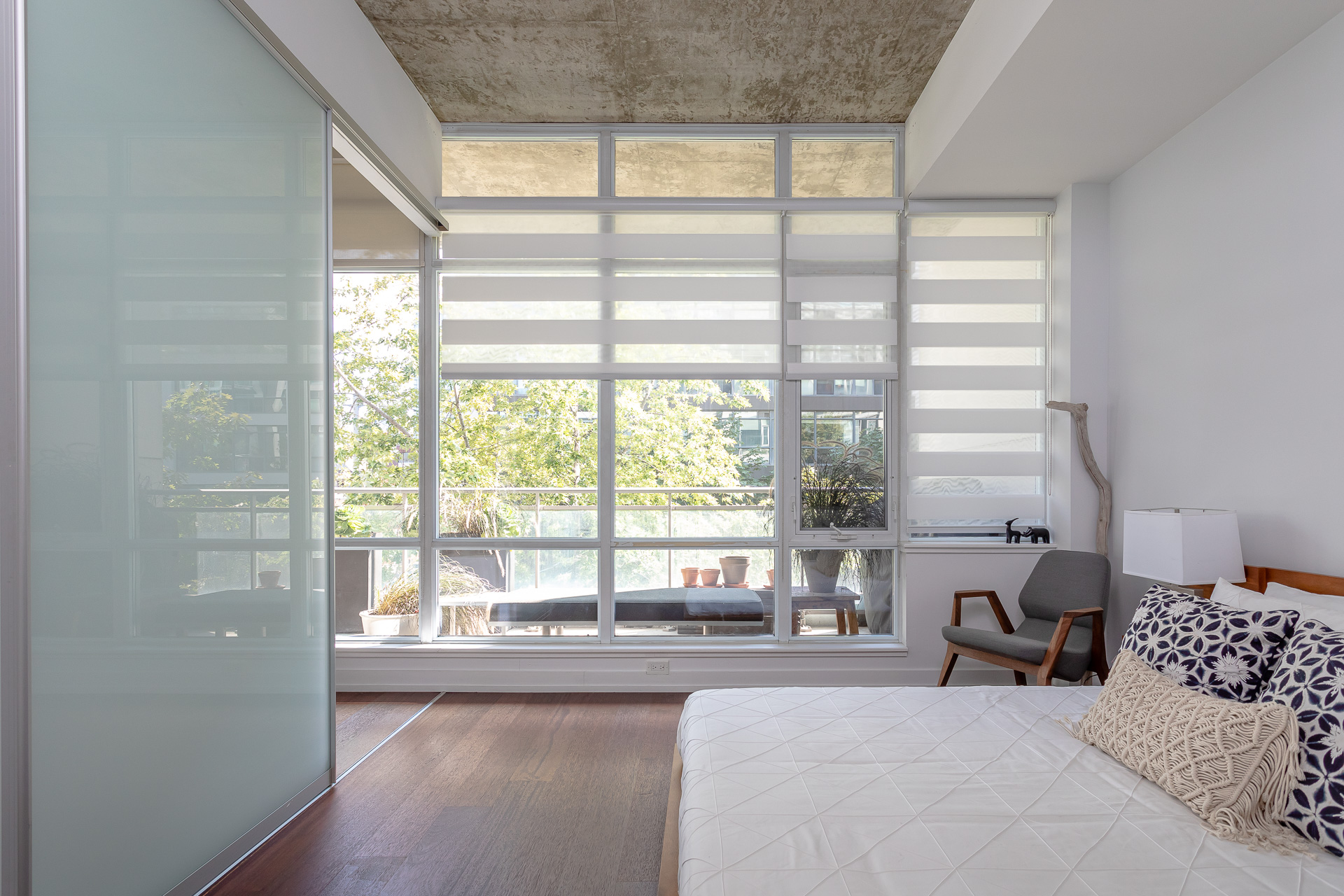 Entertain your senses at this rarely offered and highly sought after boutique loft in the Entertainment District. Tucked around the corner from always-happening King West & its world-renowned restaurants, tourist attractions, waterfront & fun-times scene, this gorgeous 2 bedroom, 2 bathroom boasts 10 foot ceilings, hardwood floors, spa-like bathrooms & the wrap-around natural light that only a corner, south-facing unit can offer. BONUS – extend summer with the gas line outside on your private balcony – for either a BBQ or natural gas fire pit!